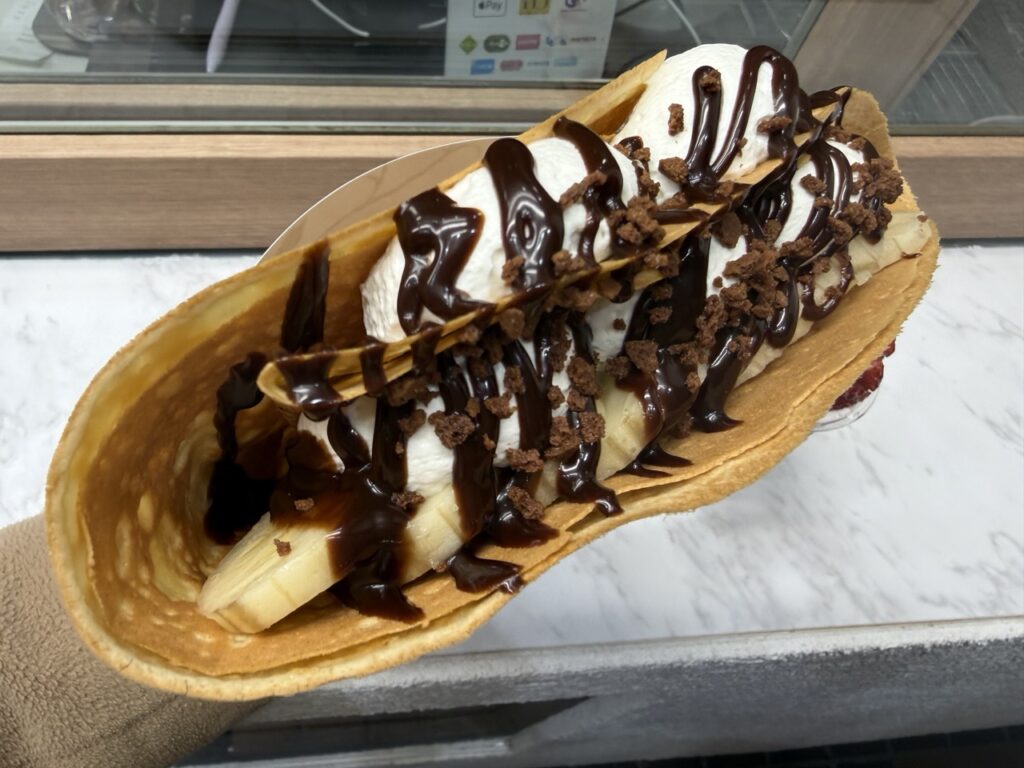 皮はパリッとしているタイプ。パリもちの生地は軽やかなホイップクリームとの相性も抜群。重すぎずクレープも最後まで美味しくいただきました。