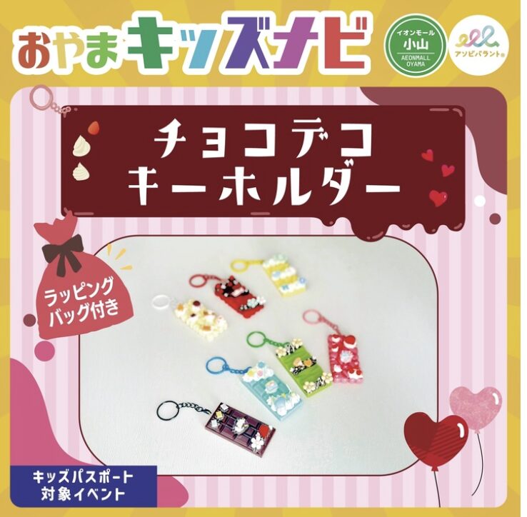 2026年2月にイオンモール小山で開催される子供向けのイベント情報をまとめました。2月は、バレンタインデーにちなんで、あまくてかわいいチョコやスイーツがモチーフの体験イベントがあります。