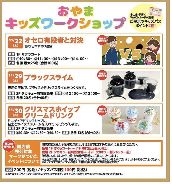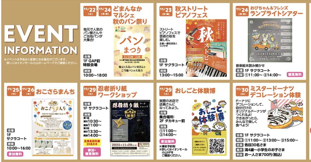 2025年11月のイオンモール小山ではイベントももりだくさん。
