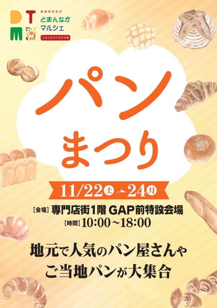 どまんなかマルシェでは11月22日〜24日の期間で「秋のパンまつり」を開催。地元で人気のパン屋さんやご当地パンが大集合します。