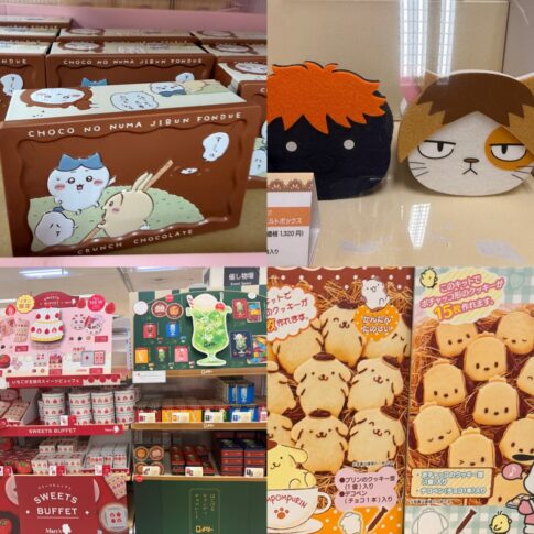 いろいろな種類のアニメのキャラクターなどとコラボしたチョコレートが並んでいました。(すでに売り切れているのもたくさん!)