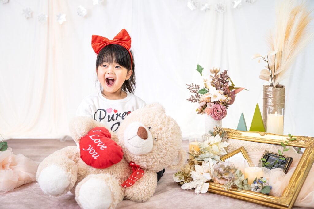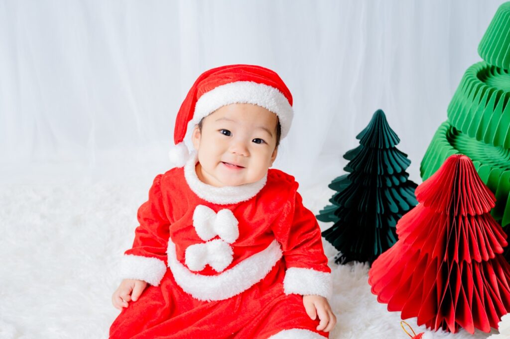 撮影アイテムは持ち込みOKなので、これからの季節にクリスマスのアイテムを持ち込んでクリスマス用の撮影もおすすめ。(撮影データは3週間後のお届けでクリスマスまでに届きます)