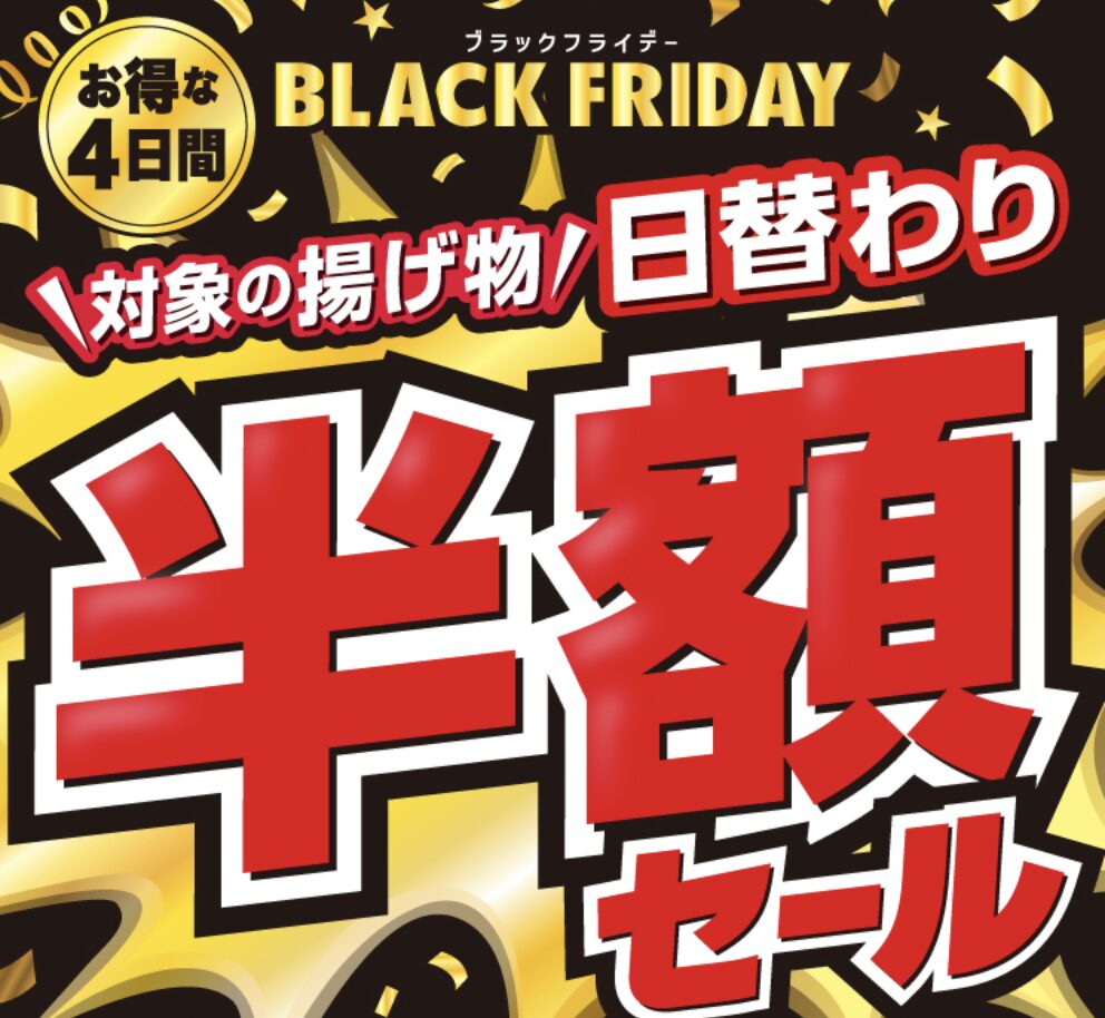 - 11月27日(木)~30日(日)の4日間限定で対象の揚げ物半額