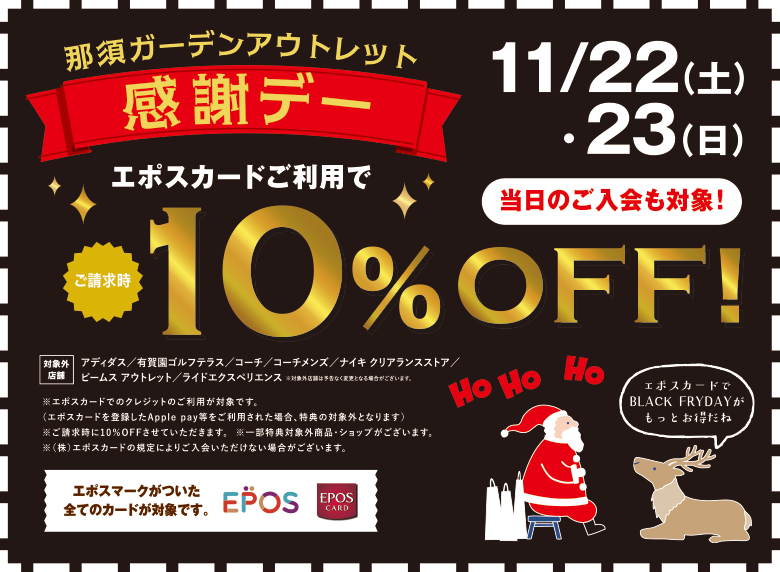 - 11月22日・23日はエポスカード利用で10%オフ(当日の入会も対象)