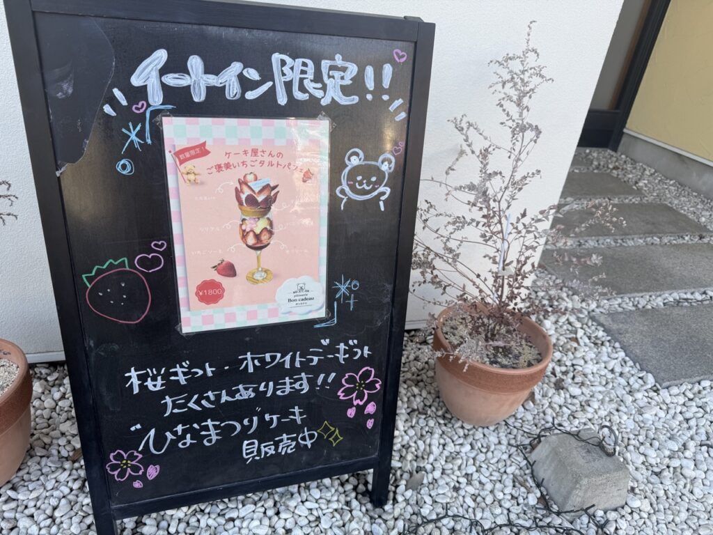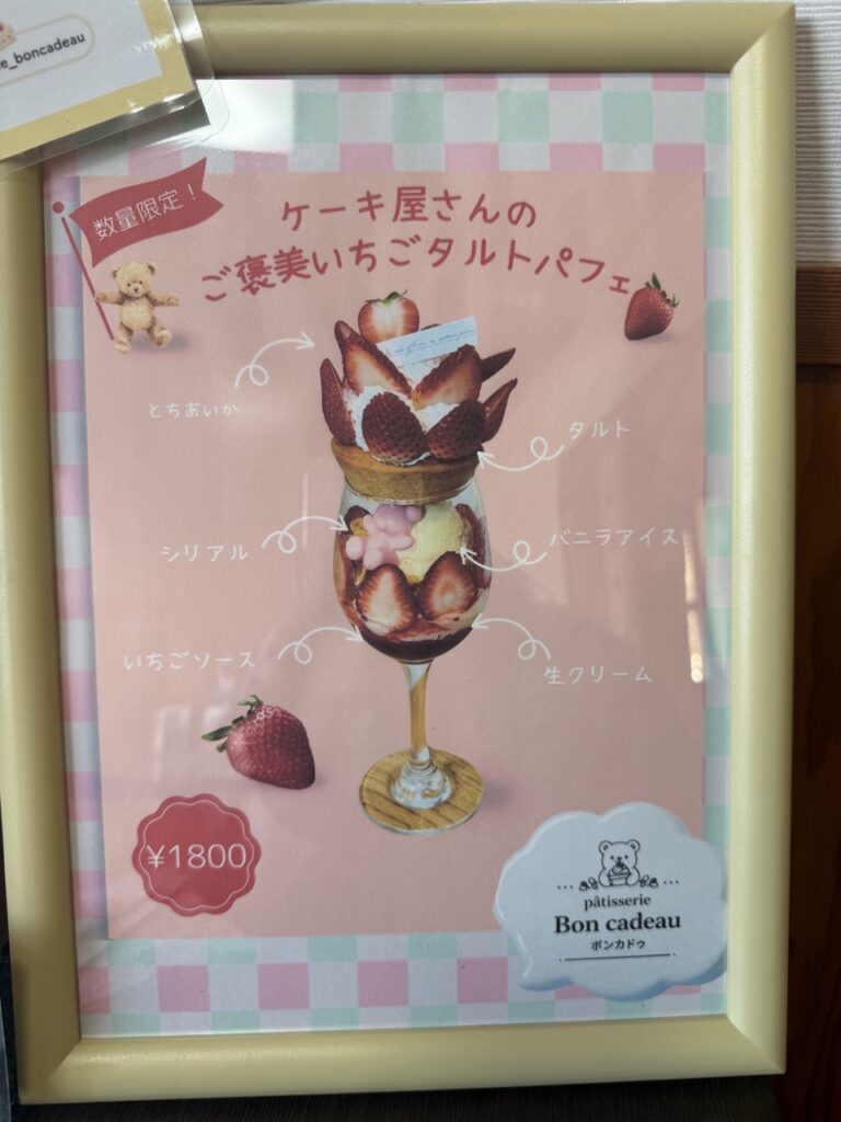 昨年(2025年)9月にオープンしたケーキ屋さん「パティスリーボンカドゥ」。イートイン限定でパフェの提供がスタートと聞いて、さっそく訪れてご褒美パフェを味わってきました。
