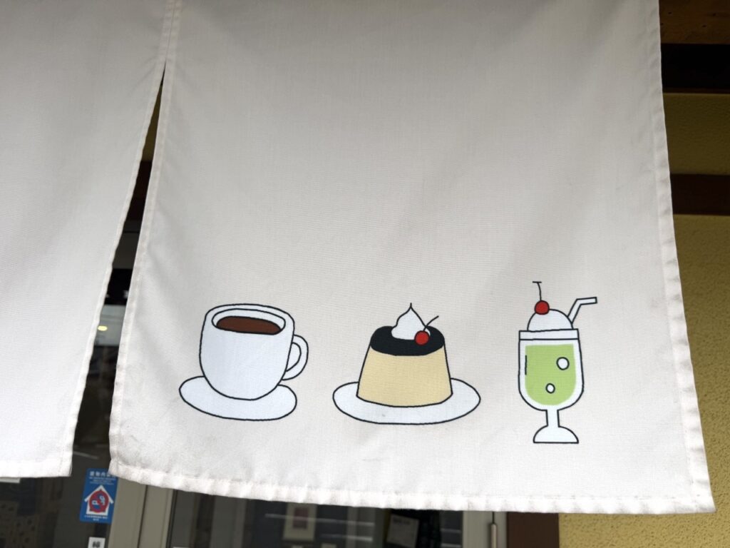 カフェタイムに訪れると、お店ののれんもカフェ仕様になっていました。