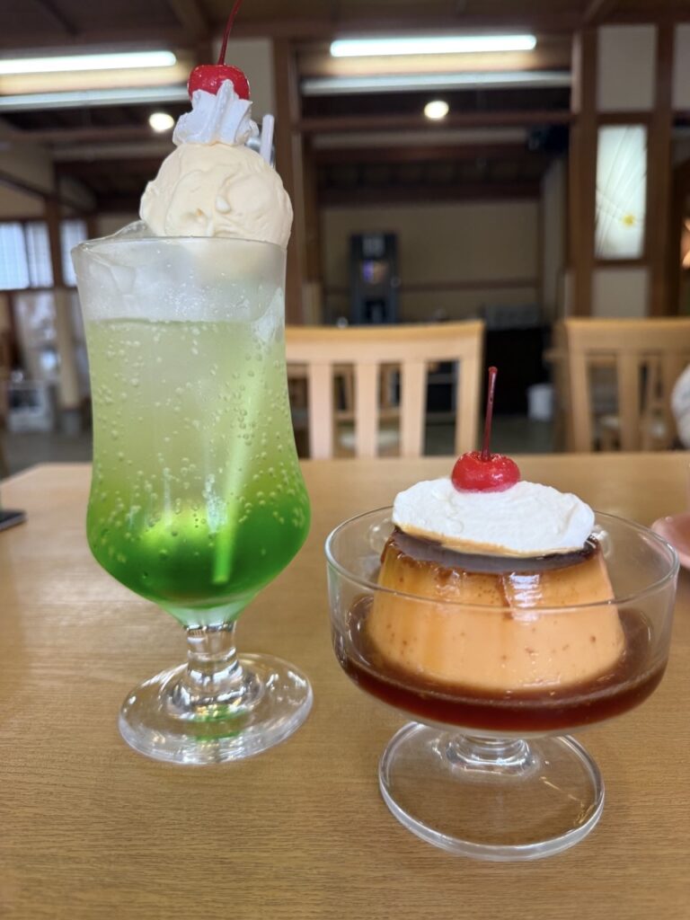 主なメニューは、昔ながらのプリンやキャロットケーキ、季節のフルーツあんみつやクリームソーダなど。