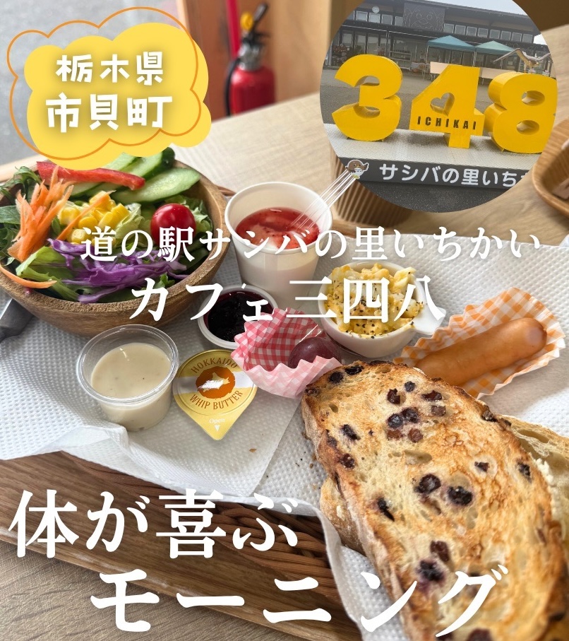 市貝町にある道の駅「サシバの里いちかい」のカフェ三四八で土日祝限定のモーニングを食べてきました♪