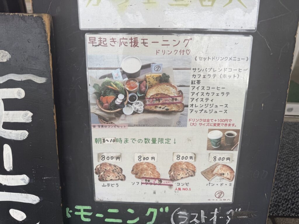 ▽モーニングは800円。8時から10時までの提供で数量限定です。