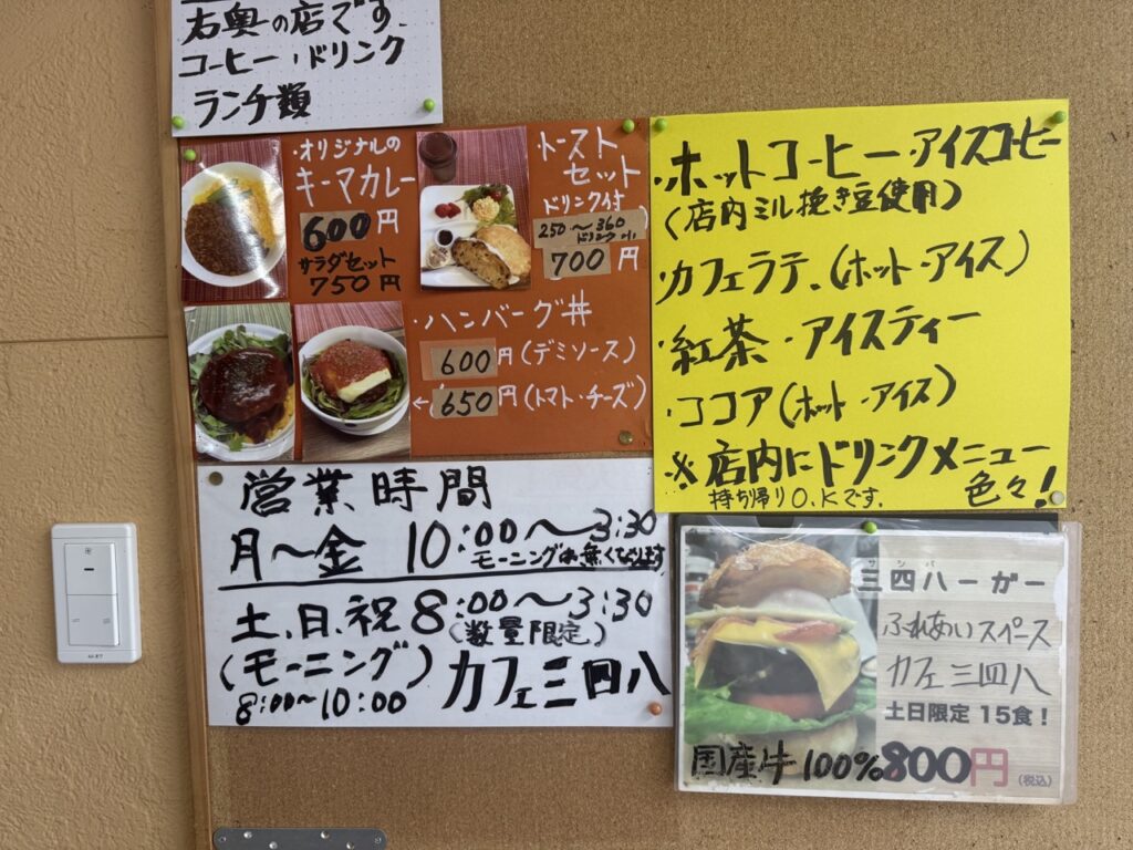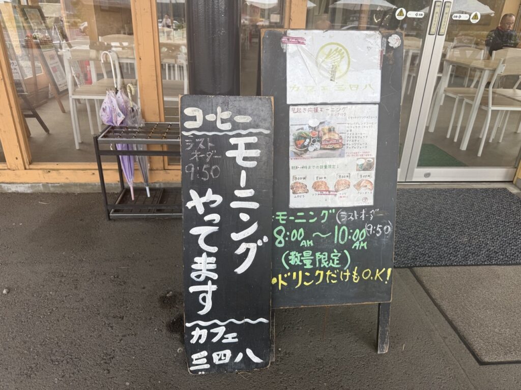 お目当ては道の駅「サシバの里いちかい」の中にあるカフェ三四八(サシバ)。平日は10時からの営業ですが、土日祝日限定で8時から営業し、モーニングを提供しています。
