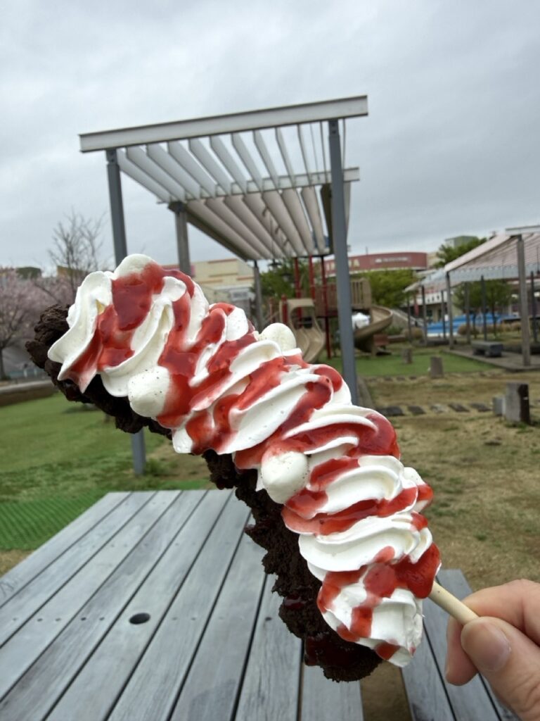 おやまゆうえんハーヴェストウォークにあるデザート王国でチョコバナナのメニュー「チョコバナナラボ」が2026年4月10日から登場しました。