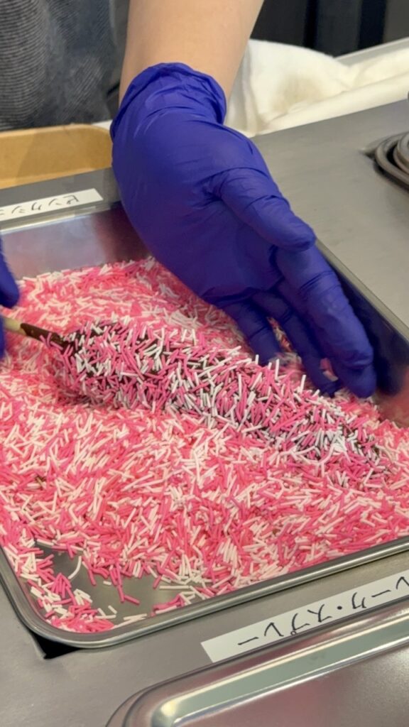 注文をしてからディップされ、出来立てが食べられるチョコバナナ。自分好みのチョコバナナを選ぶことができます。