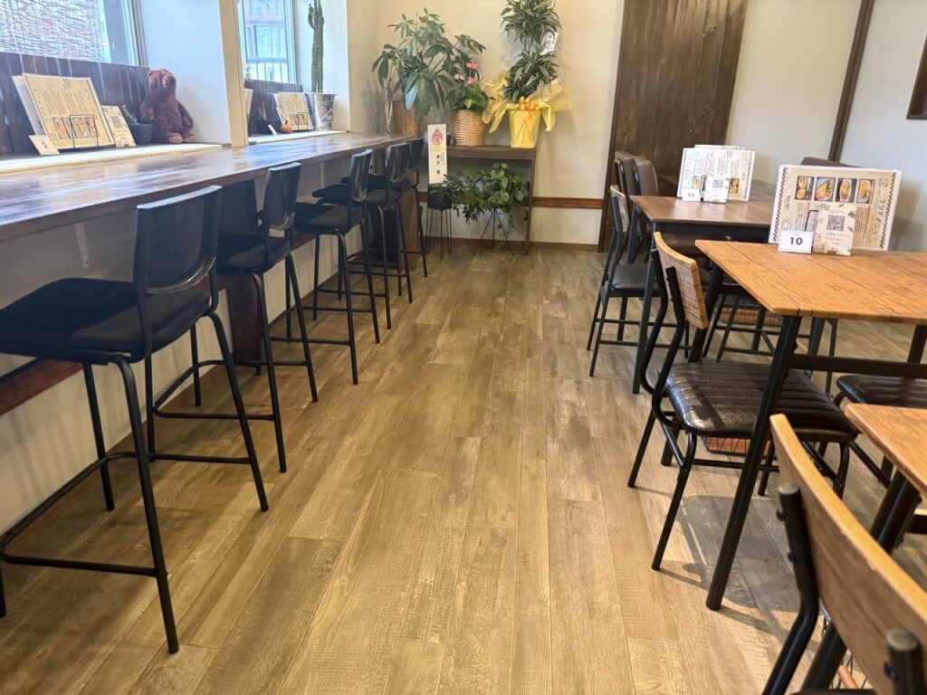 テーブル席だけでなく、カウンター席もあり、一人で訪れやすいお店です。子ども連れに安心な足が低いテーブル席もありましたよ。