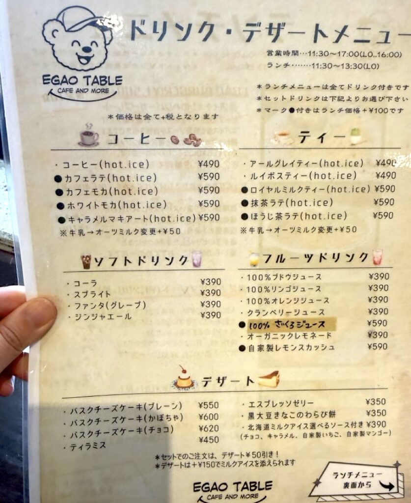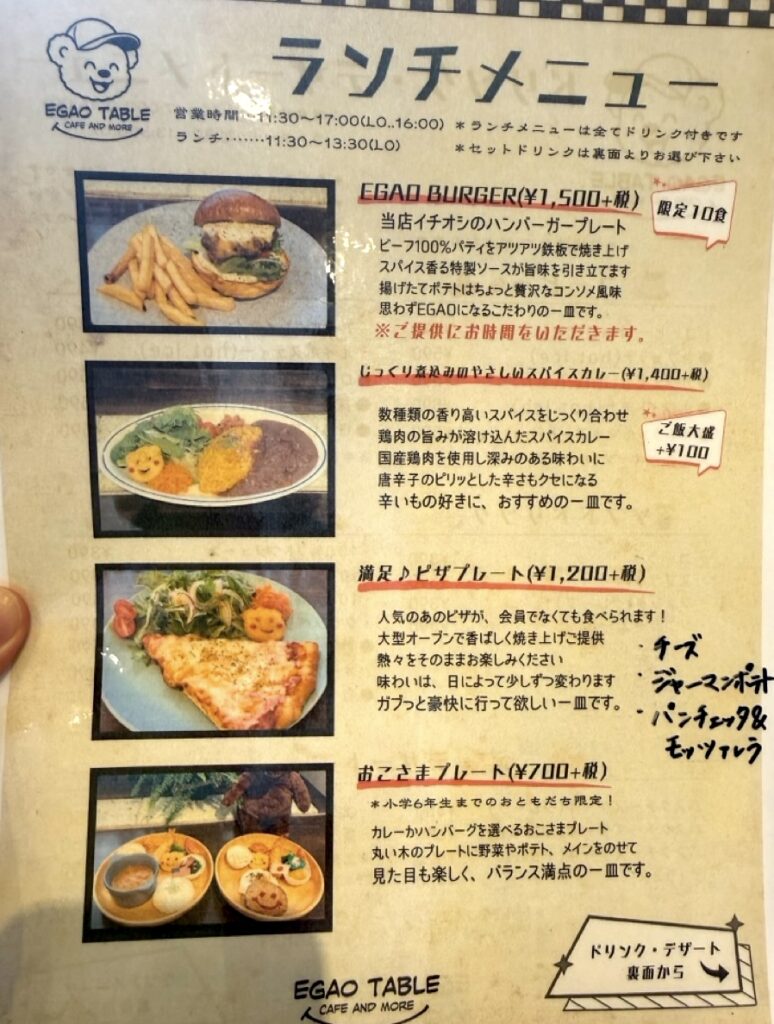 「EGAO TABLE」のアクセス・営業時間などの基本情報は以下のとおりです。