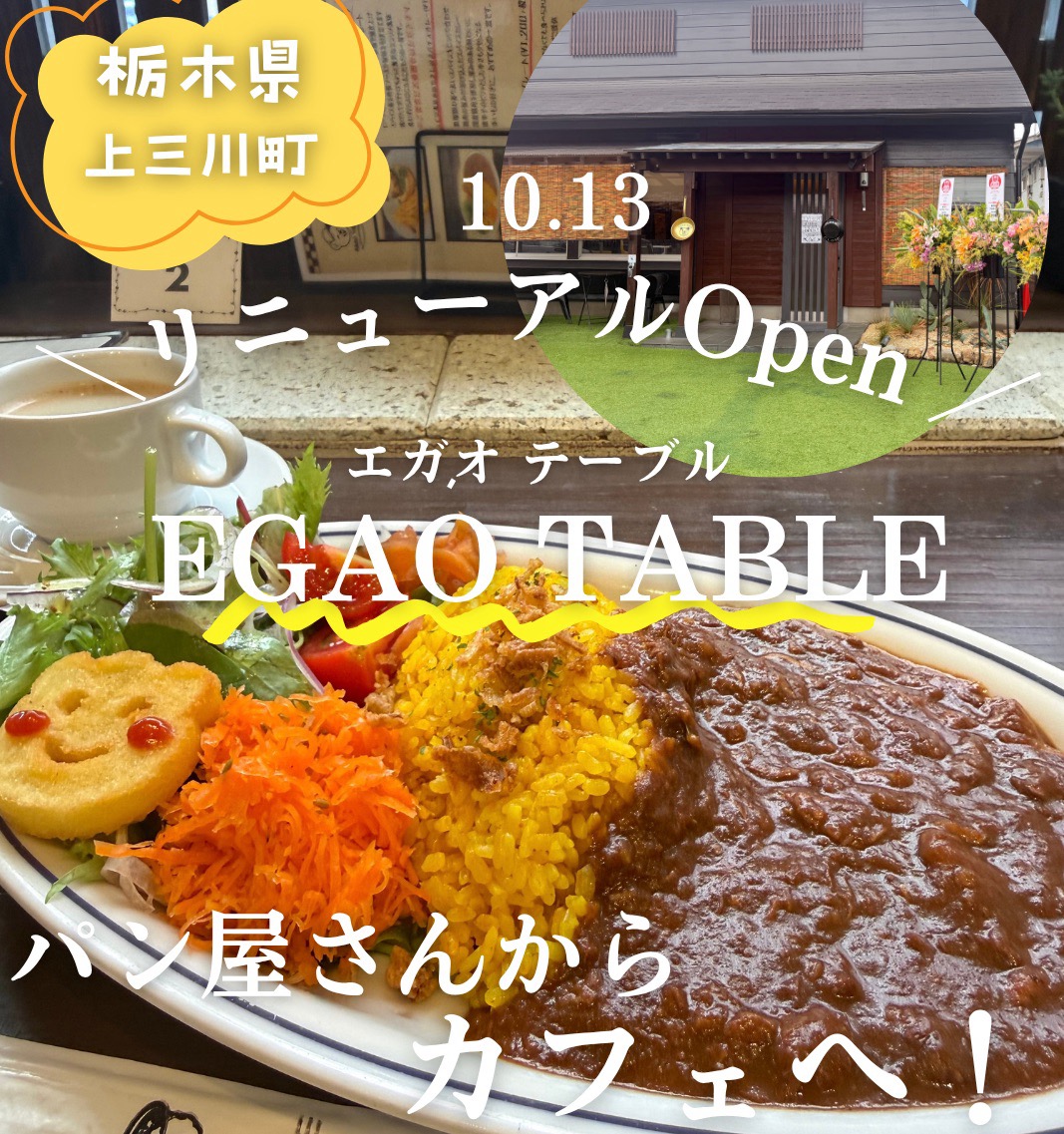 栃木県上三川にあり、パン屋として営業していた「EGAO MART」が2025年10月13日に「EGAO TABLE」としてリニューアルオープン。カフェに生まれ変わりました。