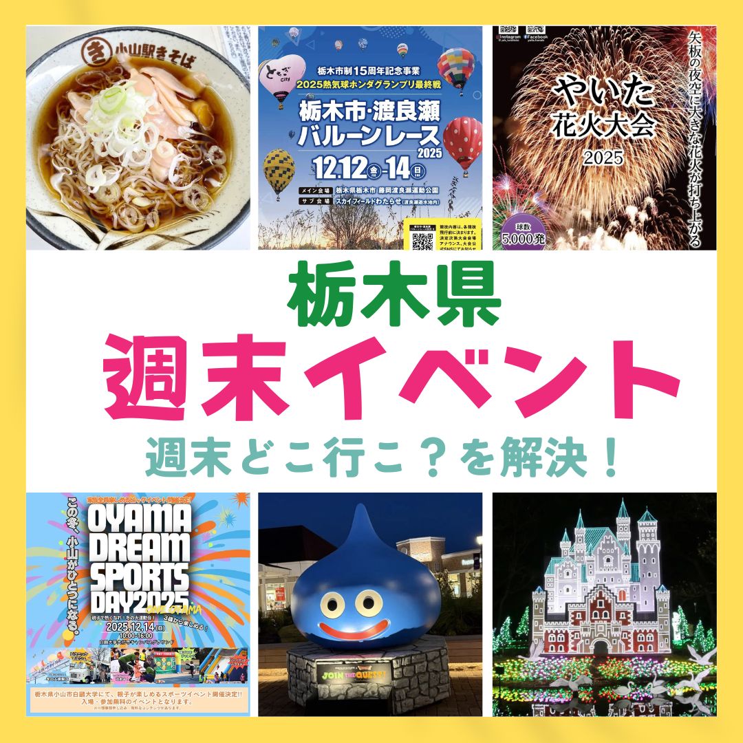 「今週末はどこに行こう?」を解決!栃木県で2025年12月12日(金)・13日(土)・14日(日)に開催される主な週末イベント情報をまとめました。ぜひお出かけの参考にしてくださいね。