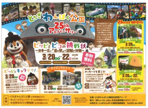 3月20日(金・祝)〜22日(日) 壬生町 とちぎわんぱく公園で25周年イベント