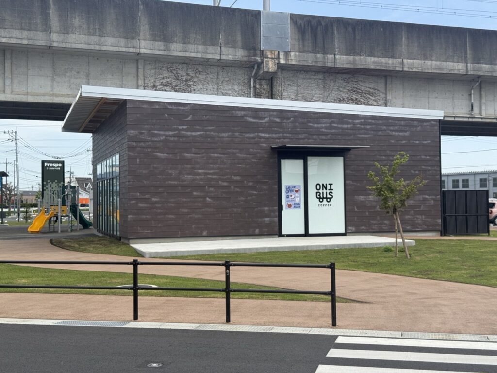 遊具の前の建物にはカフェ(ONIBUS COFFEE)が入る予定です。