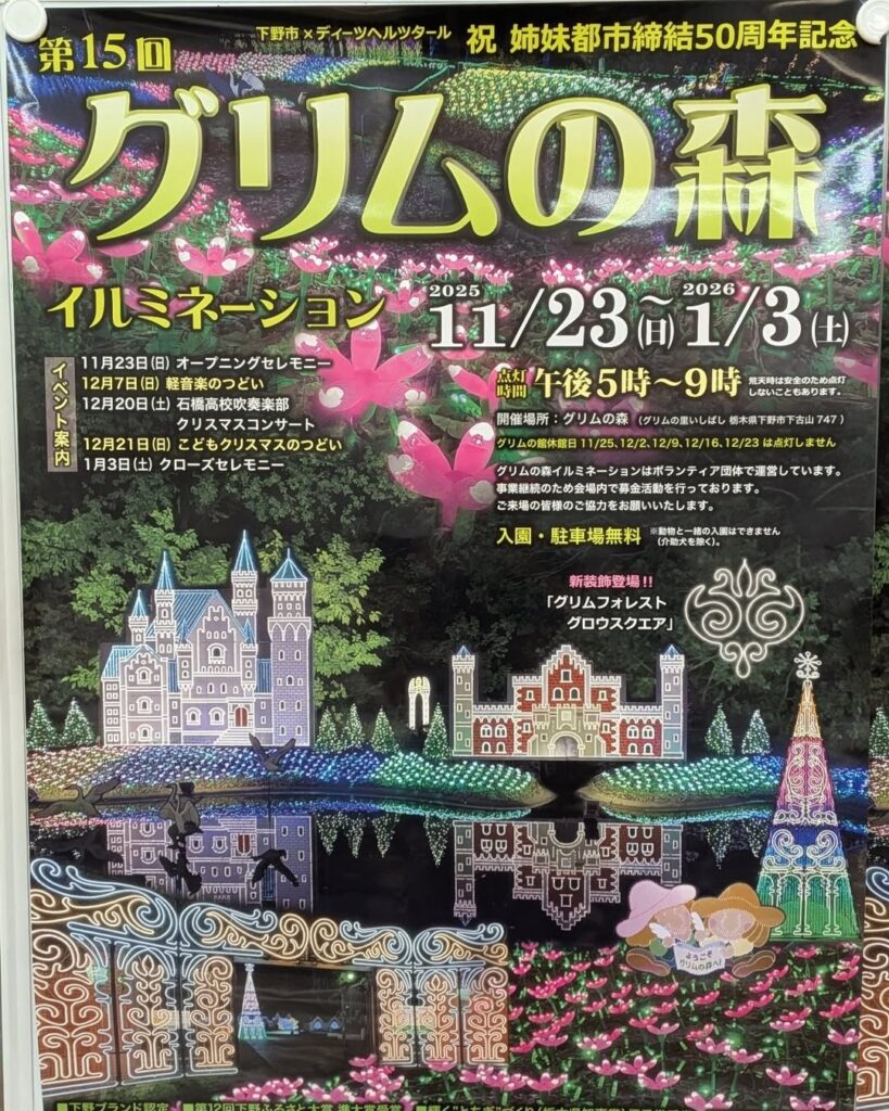 また、2025年はドイツのディーツヘルツタール市と下野市との姉妹都市締結50周年記念にあたり、新作の大物のイルミネーションも制作中です。楽しみです!