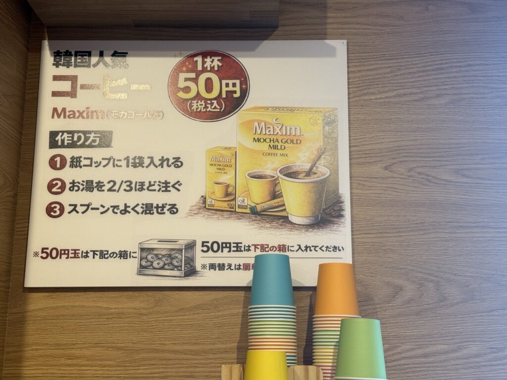 食後には1杯50円のコーヒーをぜひ!