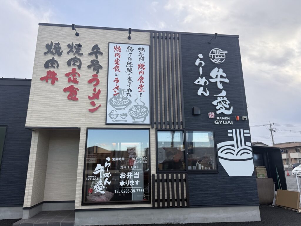 いよいよオープン!らーめん牛愛が小山市の駅東通りから移転し、新店舗が2026年2月3日にオープンします。場所は、国道50号線沿いの魚べい西城南店の隣。牛愛は、小山市城南にある人気焼肉店で、牛愛から生まれたラーメン店が「らーめん牛愛」です。