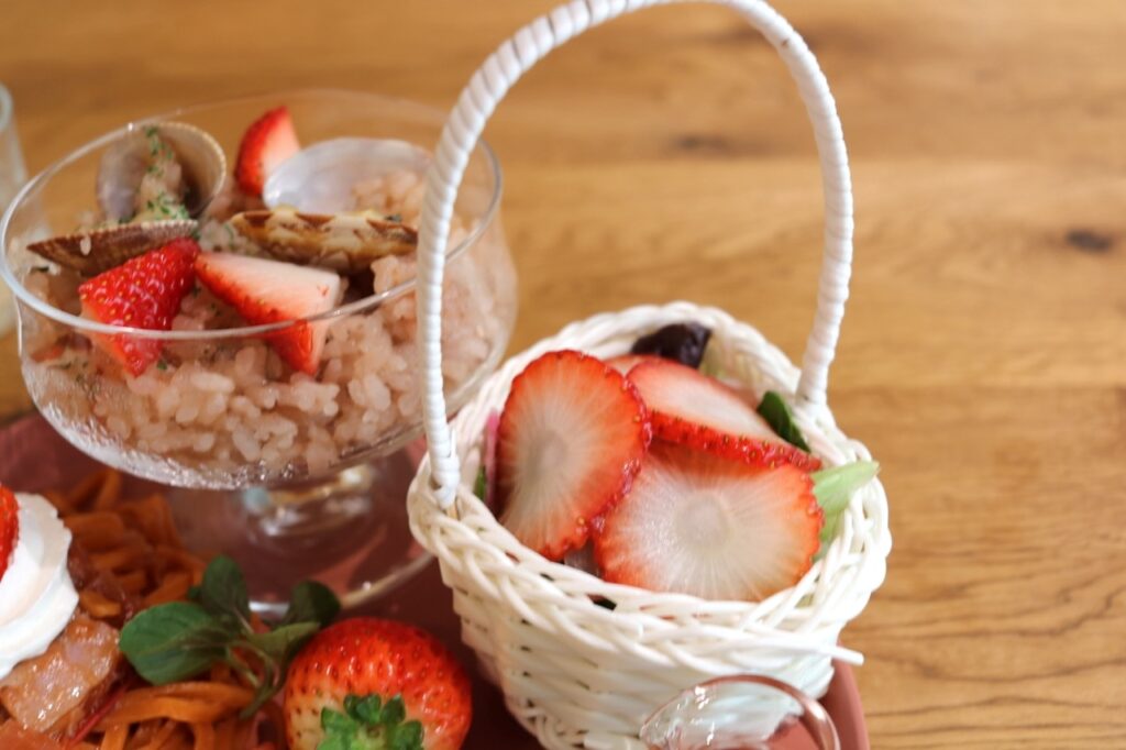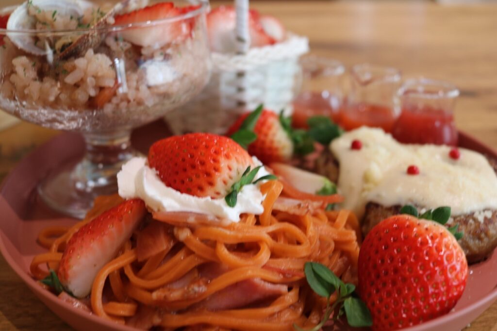 いちご好きならぜひ一度は食べてほしいいちごのお食事メニュー。ぜひチャレンジ(?)してみてくださいね!