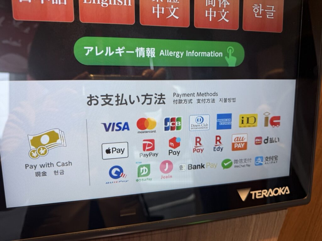 支払いは現金のほか、各種カードやQRコード決済などに対応。