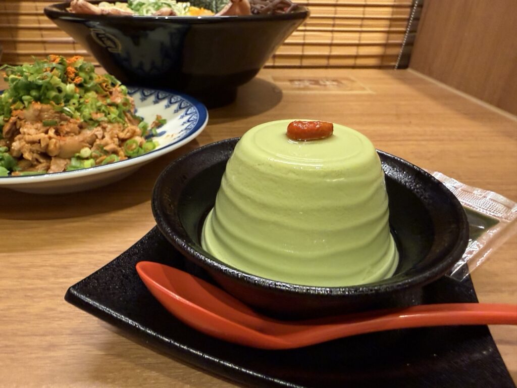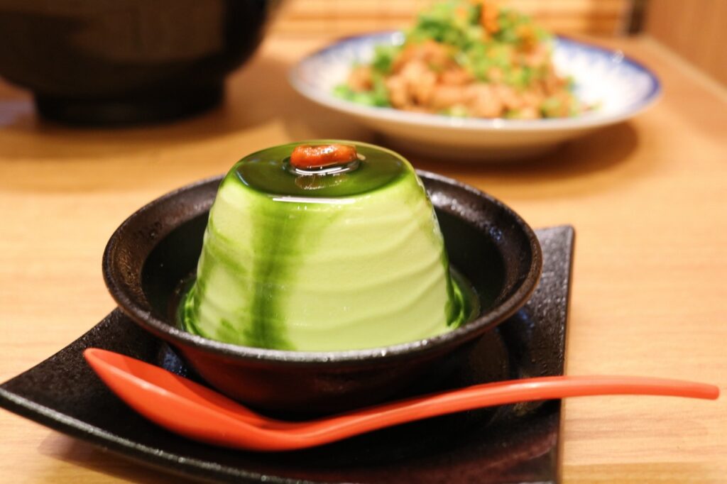 食後には、抹茶杏仁豆腐も人気です。濃厚な抹茶ソースをかけていただきます。