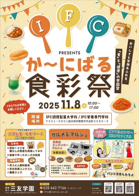 IFC調理製菓大学校/IFC栄養専門学校の合同学園祭「か〜にばる☆食彩祭」が2025年11月8日に開催されます。