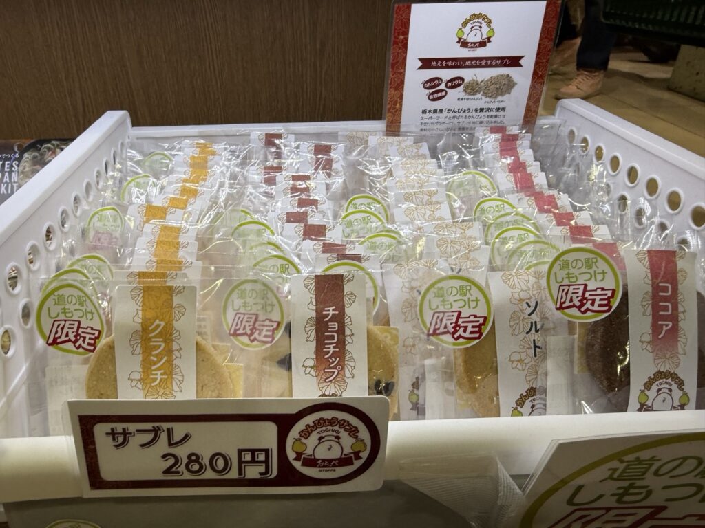 道の駅しもつけでの販売場所は、レジの近くのたまご売り場のところ。(店頭の状況によりかんぴょうサブレは置いてない場合があります)