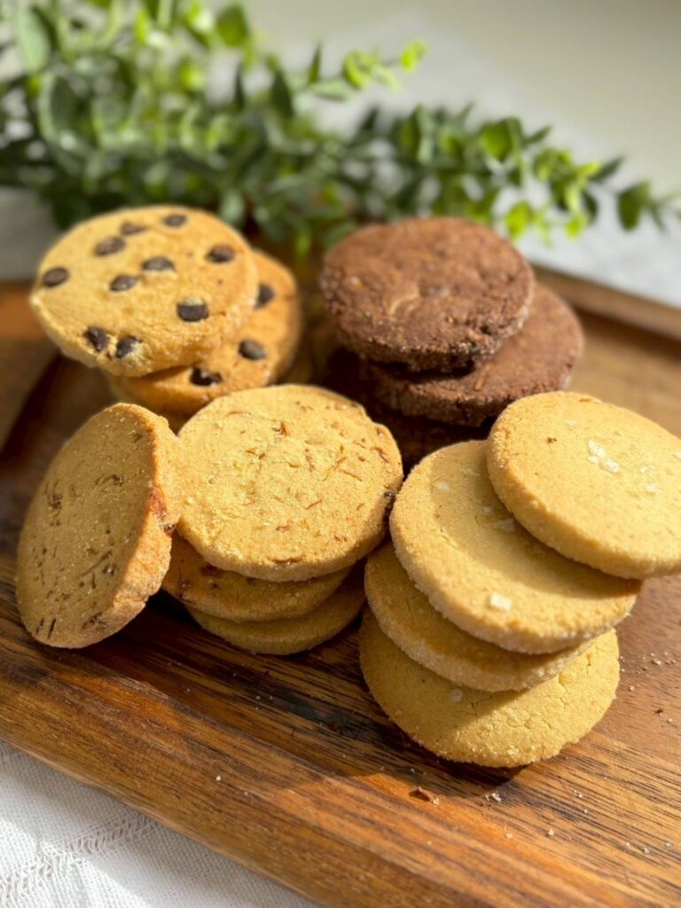 かんぴょうサブレは、乾燥させたかんぴょうをパウダーや千切りにして、サブレ生地に練り込んであります。味は、チョコチップ、ソルト、クランチ、ココアの4種類。