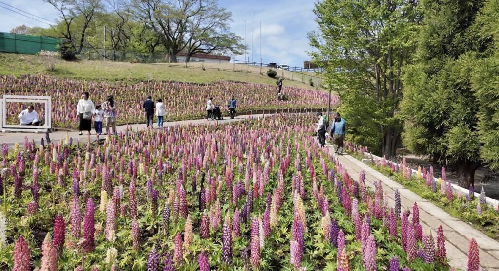 2026年4月18日(土)に鹿沼市花木センターで一面のルピナスを見てきました。すでに満開を迎えており、見頃真っ最中です。