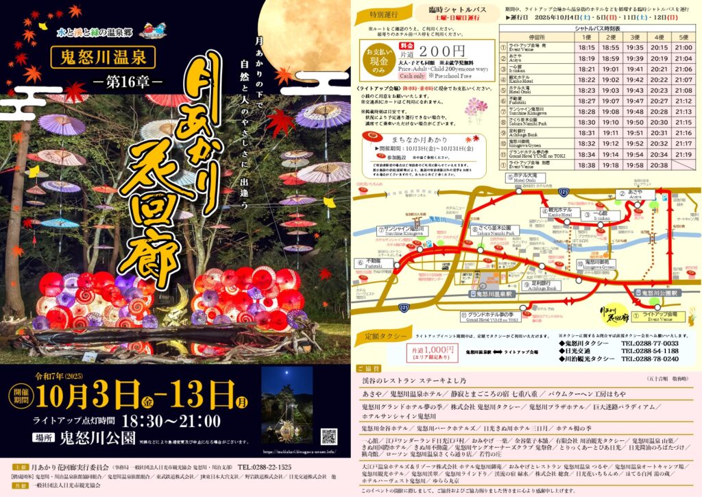 - 鬼怒川温泉内を臨時シャトルバス土日運行 料金…片道200円(大人子ども同額 ※未就学児無料)