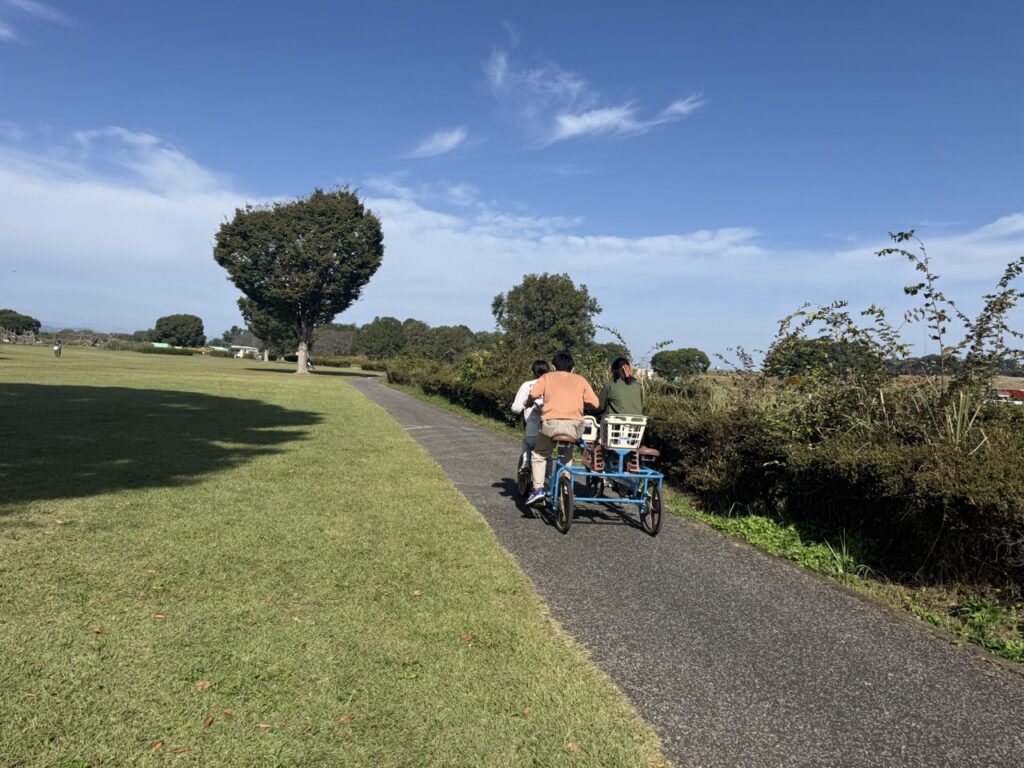広い園内を貸し自転車で一周できます。コスモス畑も巡るのでコスモスを見るのにもぴったりです。