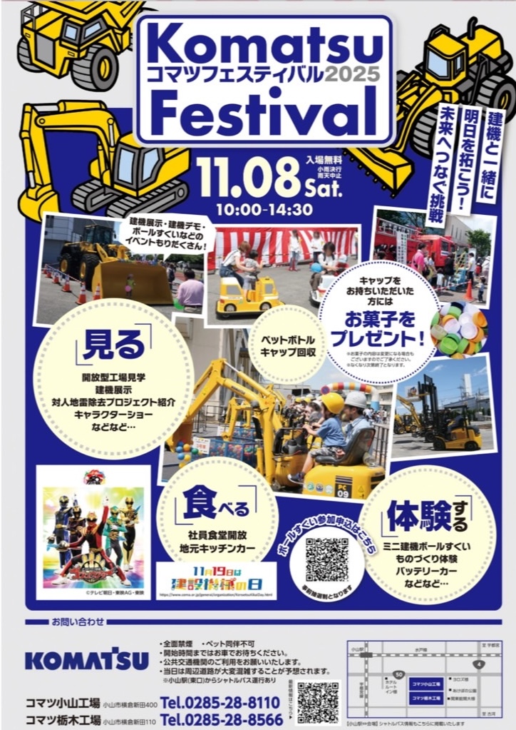 「コマツ小山・栃木工場 コマツフェスティバル2025」のイベントの基本情報は以下のとおりです。