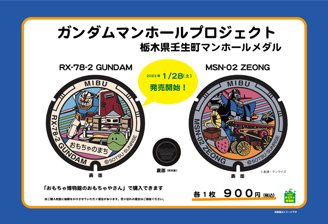 配布されるマンホールカードは、「ガンダムマンホールプロジェクト」より寄贈された「ガンダムマンホール」のうちの1つ。日本一かわいい駅名にも選ばれた「おもちゃのまち」駅の東口に設置してある壬生町のオリジナルデザインです。