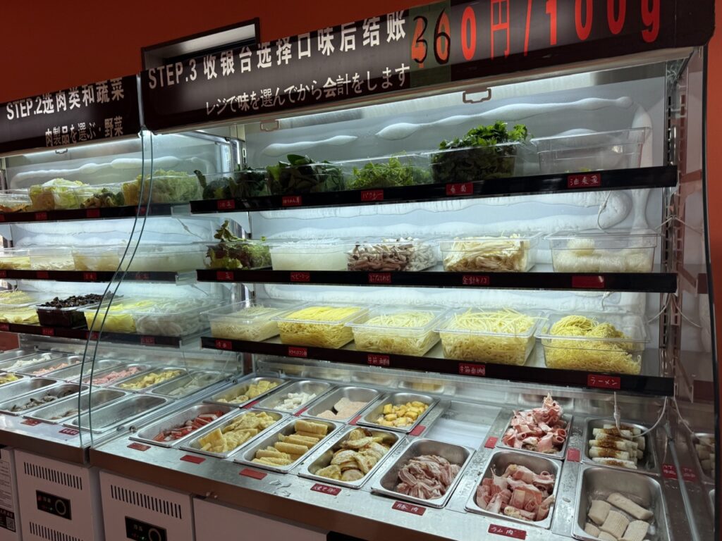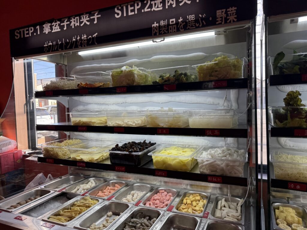 麻辣燙の注文スタイルは他の麻辣燙のお店と一緒でした。まずは、大きなボウルとトングを手に持ち、好きな具材と麺を選びボウルに入れていきます。(知らずに訪れると戸惑うかもしれません)