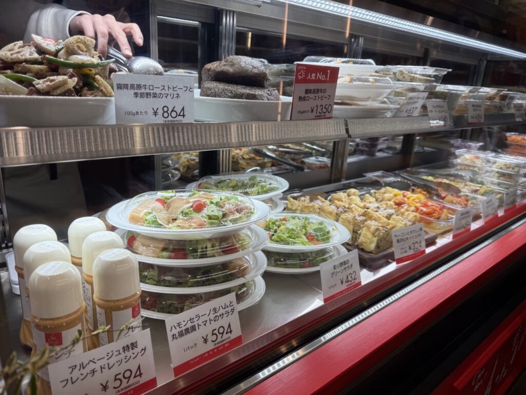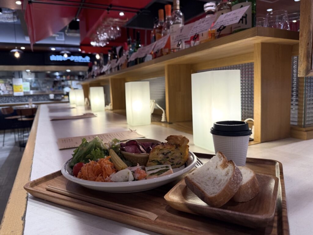 イートインもOK!サラダたっぷりのデリプレートや立ち飲みメニューがありましたよ。ランチに利用したり、仕事帰りに立ち飲みするのも良さそうですね。
