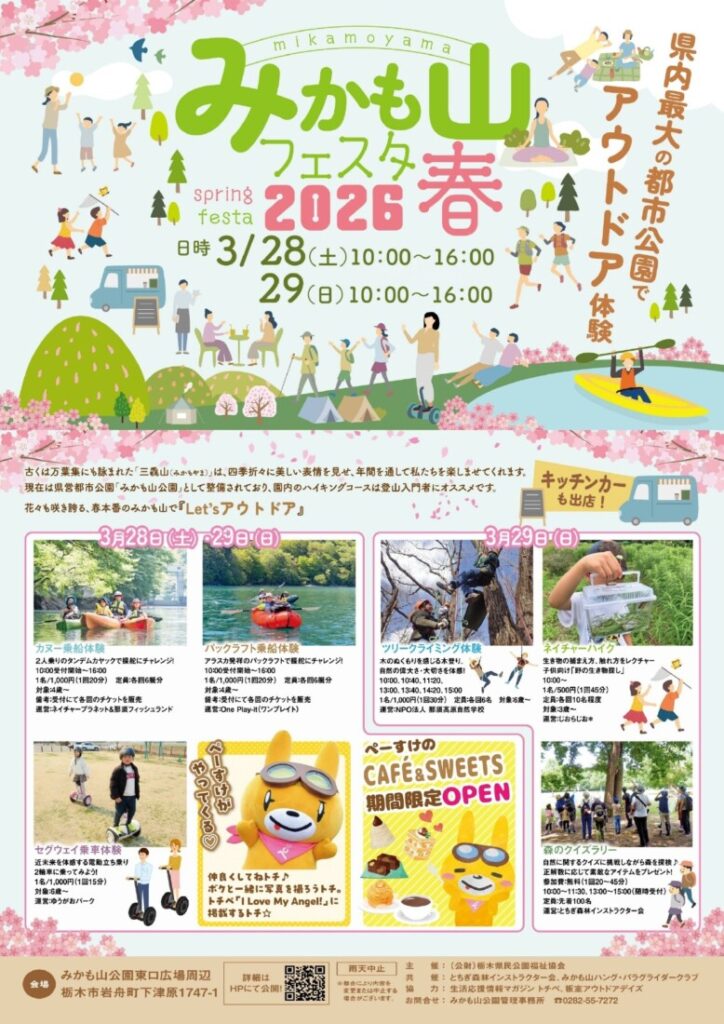 栃木市にあるみかも山公園で、春のアウトドアイベント「みかも山フェスタ2026春」が開催されます。