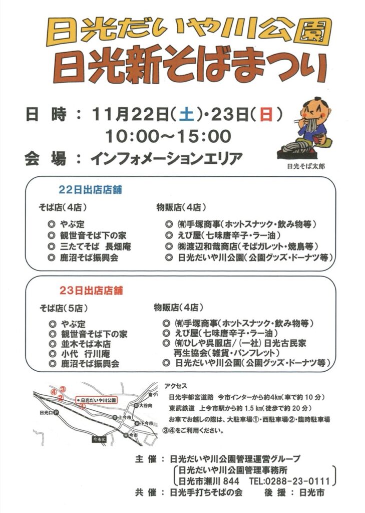 11月22日23日に日光だいや川公園「日光新そばまつり」が開催!1杯600円で新そばを味わう|日光市