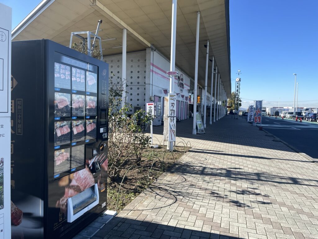 小山市にある道の駅「道の駅思川」にも肉ガチャの自動販売機が設置されています。