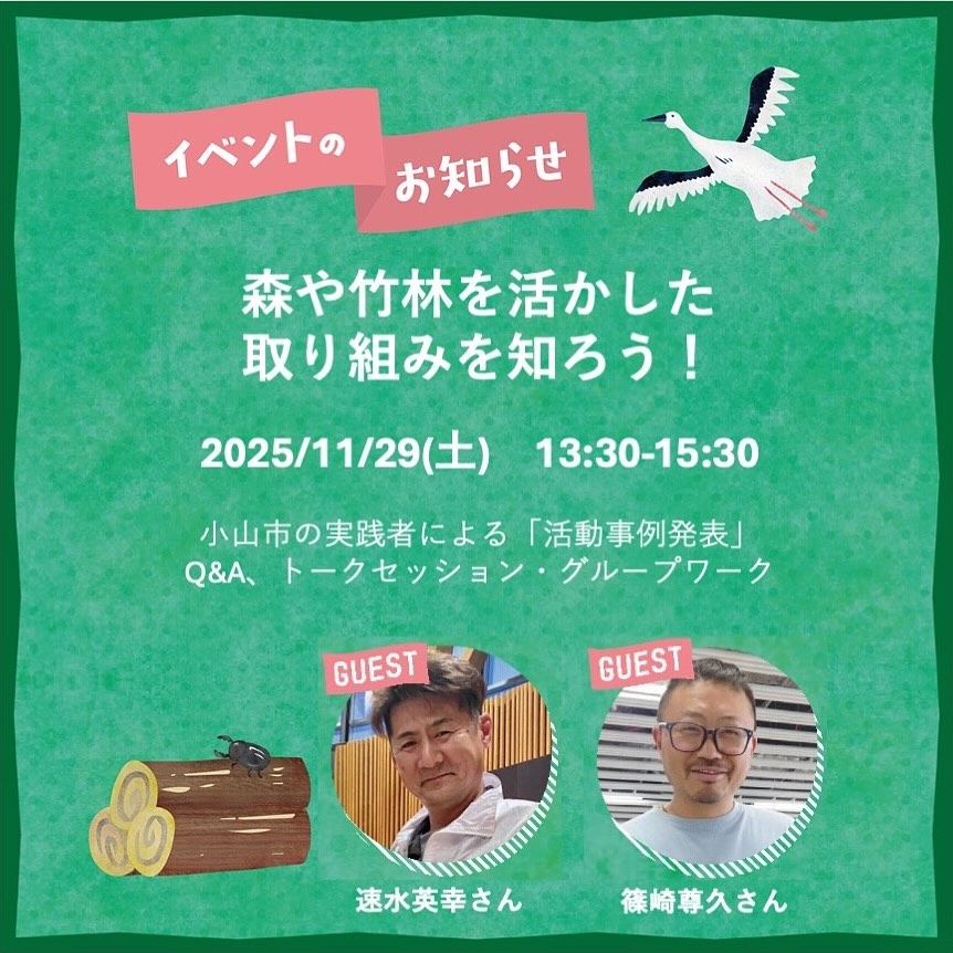 • 11月29日(土)開催:準備編〜森や竹林を活かした取り組みを知ろう!