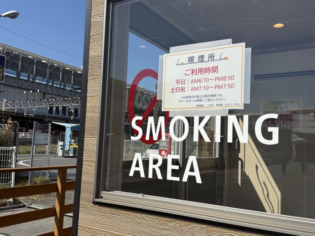 小山駅西口にあった小山市営小山駅西駐車場が3月31日をもって閉鎖され、併設されていた喫煙所も撤去されたことをうけて、東口に喫煙所が新たに設けられました。