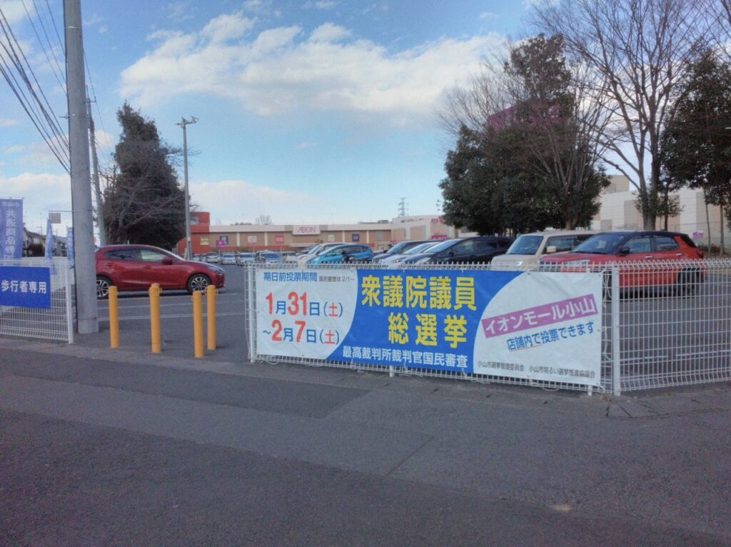 前回の参議院選挙に続き、2月8日投票日の衆議院議員総選挙でも、栃木県小山市のイオンモール小山で期日前投票ができます。
