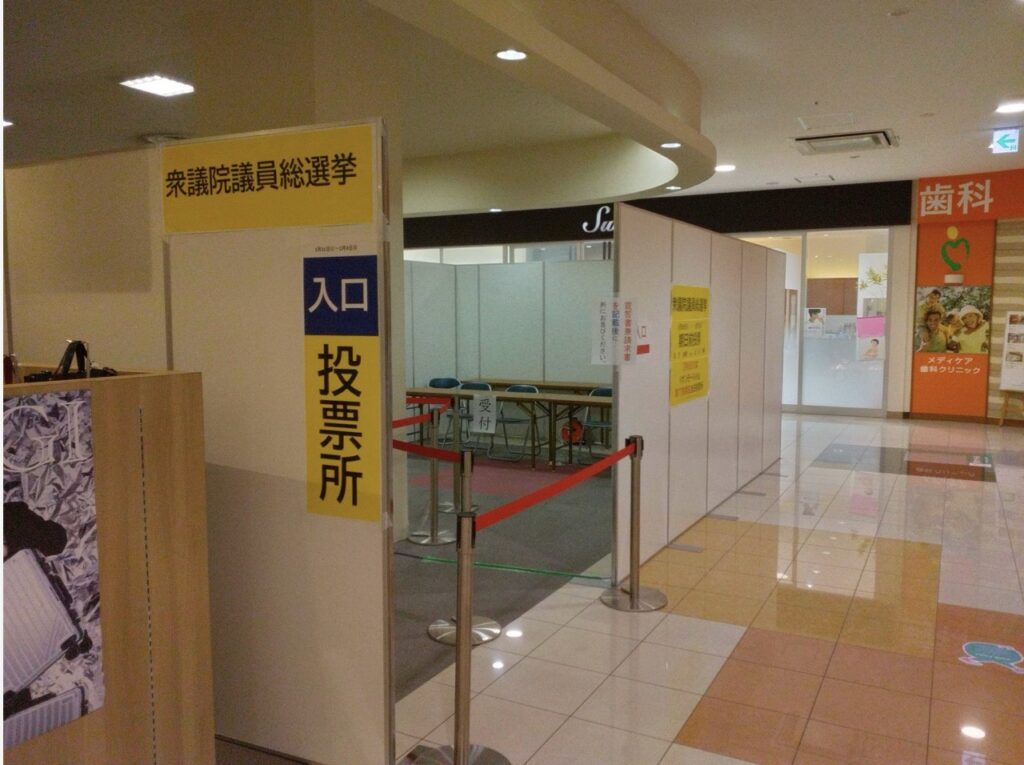 また、前回は駐車場の一角に投票所が設置されましたが、今回は店内に投票所が設置されるのでより便利に投票ができます。場所は、1階専門店街の歯医者さんの前です。(GAPの近く)