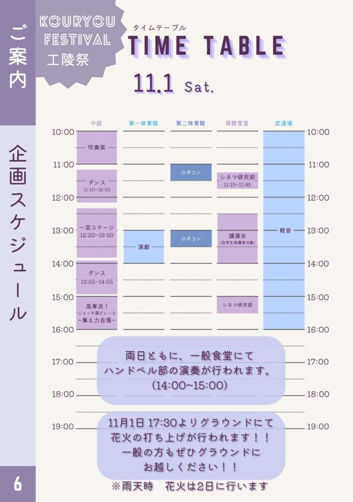 - 花火:11月1日(土)17時30分から グランドから鑑賞可能 ※雨天時は2日へ延期