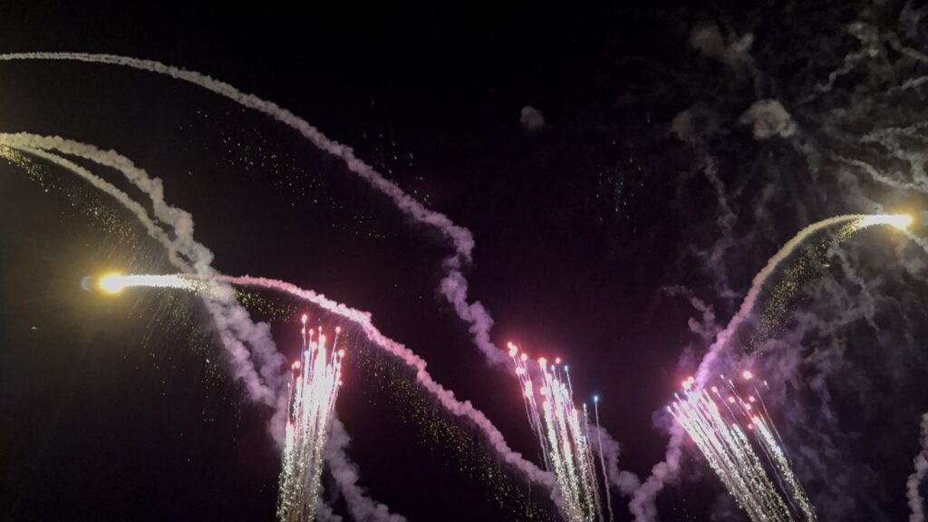 - 花火の打ち上げは音楽にあわせた花火を間近に見られる