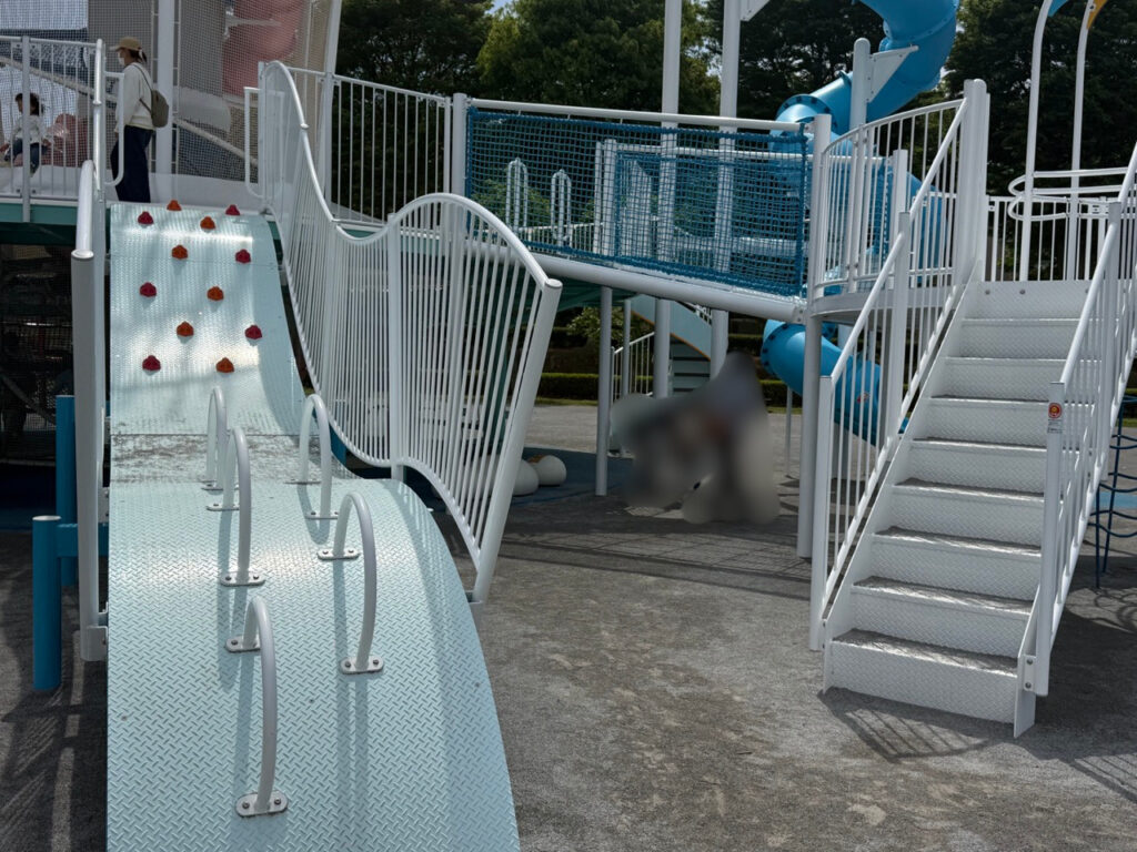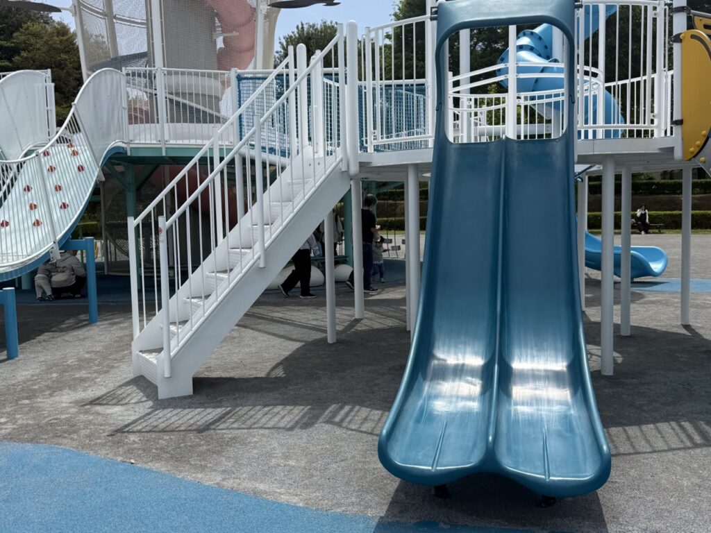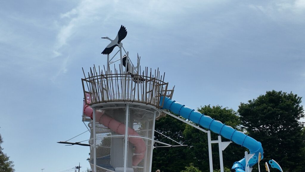 一番上のコウノトリの巣まで登ったらロング滑り台で降りてくることができます。
