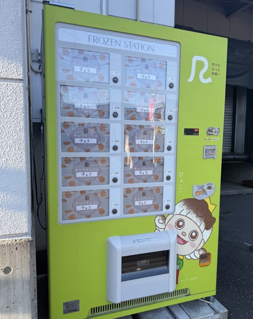 ▽店頭にあるスイーツの自販機。フェナンシェ12個入り500円で販売されています。