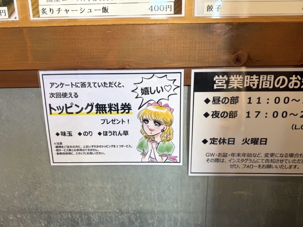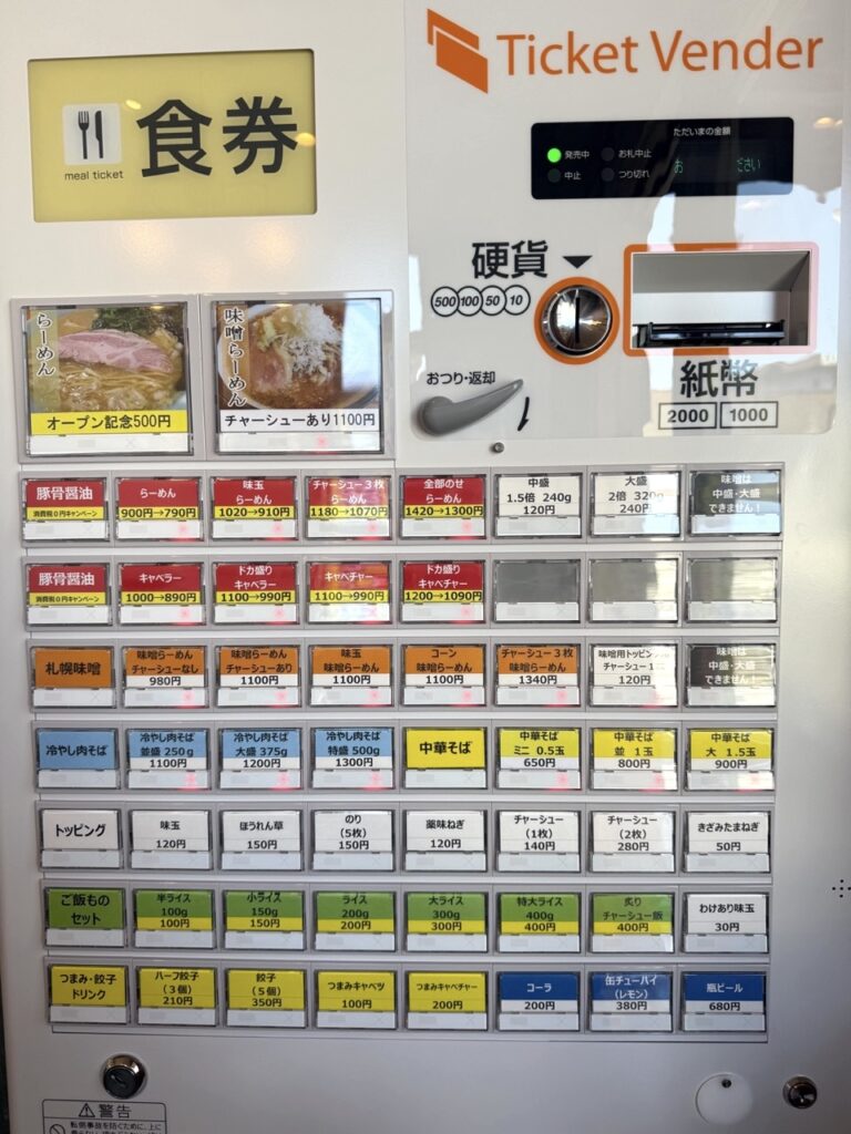 この日に選べたのは、オープニングキャンペーンのらーめん(500円)のみ。